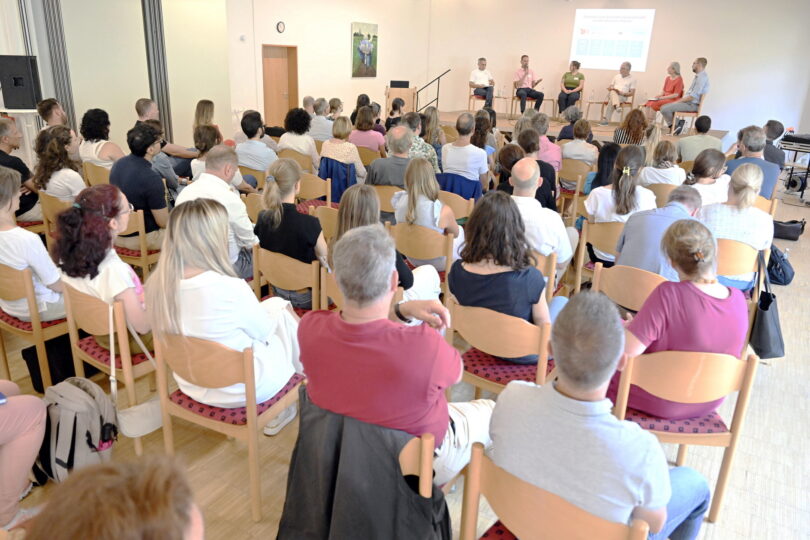 Dr. Martina Ortner, Professorin für migrationssensible Soziale Arbeit an der OTH Regensburg, setzte mit ihrem Vortrag den Rahmen für die anschließende Podiumsdiskussion. Sie rief dazu auf, sich die Zahlen und Fakten zur Migration in Ruhe anzusehen – anders als dies oftmals in den Medien geschehe. „Bei diesem hochkomplexen Thema muss man über längere Zeiträume denken: Acht Jahre nach ihrer Ankunft sind etwa 68 Prozent aller Geflüchteten erwerbstätig, denn natürlich müssen sie zunächst ankommen und die Sprache lernen“, so Dr. Ortner. „Insgesamt sollten wir als Gesellschaft weniger Anpassungsdruck weitergeben, sondern respektvoll miteinander umgehen.“