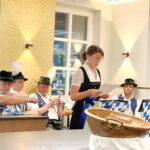 Fotos: Hötzelsperger – 1. Die wiedergewählte Vorstandschaft – von links: Beisitzer Anton Hötzelsperger, Zweiter Vorsitzender Michael Feßler, Beisitzer Marlies Birkenstock und Max Ziegmann, Kassierin Christine Obinger, Erster Vorsitzender Michael Anner junior und Schriftführer Erwin Mrotzek junior. – 2. Priener Blasmusikanten bei der Versammlung des Fördervereins im Hotel Luitpold.