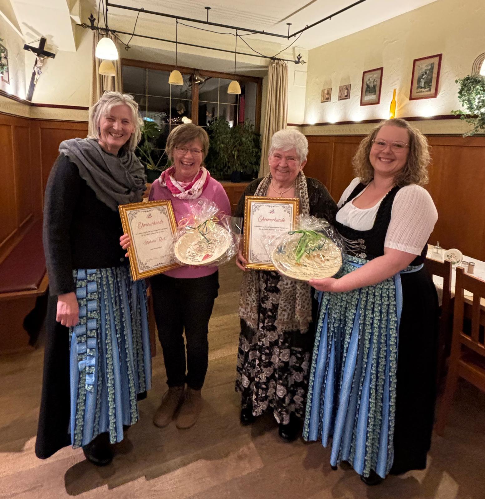 Annemarie Kamysek, Stephanie Riedl, Berta Mayer und Christine Oeckel – Estner Maria nicht anwesend, da krank – es sind 3 Damen, welche zu Ehrenmitgliedern ernannt wurden!