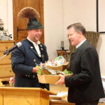 Bürgermeister Andreas Fenzl von der Gemeinde Rimsting dankte im Beisein und auch im Namen der beiden Altbürgermeister Sepp Mayer und Florian Hoffmann, dass die Greimhartinger mit ihrem intakten Vereinsleben auch ein stets gutes Miteinander mit der Gemeinde pflegen und sagte: „Die Vereine sind das Rückrat einer Gemeinde und Gesellschaft, wir ziehen den Hut vor jedem Einzelnen, der sich in einem Ehrenamt zum Wohle der Gemeinschaft einbringt“. Nachdem es für Andreas Fenzl die letzte Versammlung bei den Greimhartinger Trachtlern war und er nicht weiter für das Bürgermeisteramt kandidiert, bedankte sich Vorstand Hans Riepertinger mit einem Präsent beim Bürgermeister für die immer verlässliche Zusammenarbeit und für den guten Besuch bei den Vereinsveranstaltungen. Die stellvertretenden Vorstände Bernhard Mayer, Peter Wallner und Rupert Pflüger bedankten sich vor allem für die Mithilfe bei den Veranstaltungen im Gemeindehaus (Küche, Service und Putzen) sowie bei den Festen auf dem Dorfplatz. Die nächste Veranstaltung ist am Samstag, 15. November ein eintrittsfreier Hoagascht sowie einem kleinen Einakter-Theaterstück mit vereinseigenen Kräften ab 20 Uhr im Gemeindehaus . Über die Ehrungen und über die Vorstellung des Gaufestes 2027 berichten wir noch gesondert.