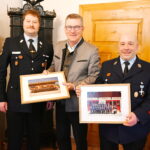 Im Anschluss ergriff erster Vorsitzender Martin Huber noch einmal das Wort und bedankte sich beim ersten Bürgermeister Georg Huber für die langjährige Zusammenarbeit. Er habe stets ein offenes Ohr für die Feuerwehren gehabt. Zur Erinnerung erhielt erster Bürgermeister Georg Huber zwei Gruppenbilder der Feuerwehr Steinkirchen und der aktiven Wehr in Rossholzen, welche letztes Jahr im Rahmen des Jubiläums gemacht wurden. Erster Bürgermeister Georg Huber war sichtlich gerührt und bedankte sich für das Präsent. Manche Ereignisse, wie beispielsweise die Leistungsabzeichen bei Wind und Wetter werden ihm sicher lange in Erinnerung bleiben.