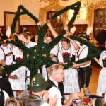 Durch das abwechslungsreiche Programm, das vom Auftanz über schneidige Plattler und Volkstänze der Aktiven und der Kinder- und Jugendgruppe bis hin zum kernigen Gesang des Reischenharter Viergesangs sowie den festlichen Klängen des Harfenduos Theresa Burgstaller und Bettina Götz und der Burgkirchner Alphornbläser reichte, führte Andreas Wachs von der Bayerischen Trachtenjugend. Einer guten Tradition folgend laden die ‚Holzlandler‘ zu ihren Vereins-Jubiläen stets auch die Patenvereine „Taubenbergler Stamm“ Neumarkt-St.Veit, „Grenzlandler“ Leonberg und „D’Reischachtaler“ Reischach ein, die den Heimatabend mit dem Sterntanz, dem Dreisteyerer und Schnalzereinlagen bereicherten. Die Vorstände der Patenvereine übermittelten zudem mit einem Geld-Geschenk ihre Glückwünsche und betonten dabei das gute Miteinander unter den vier Trachtenvereinen. Mit dem festlichen Kronentanz auf frisch gebundenen Bögen setzten die Aktiven mit zehn Paaren schließlich den tänzerischen Höhepunkt des gelungenen Jubiläums-Wochenendes zum 80jährigen Vereinsbestehen, das sicherlich allen Beteiligten und Mitwirkenden noch lange in guter Erinnerung bleiben wird.