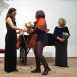 Vereinsvorsitzende Edith Karnowski überreichte jeder der beiden Musikerinnen einen bunten Blumenstrauß. Die Musikerinnen bedankten sich ihrerseits mit einer charmanten Zugabe, Edward Elgars „Salut d’Amour“ (Liebesgruß).