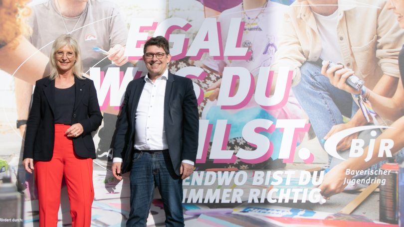 Der Bayerische Jugendring (BJR) startet in dieser Woche eine Kommunikationskampagne, um auf die zahlreichen und vielfältigen Angebote der Jugendarbeit in ganz Bayern aufmerksam zu machen. Die Bayerische Jugendministerin Ulrike Scharf und BJR-Präsident Matthias Fack stellten nun die ersten Motive der Kampagne vor, die Bestandteil des Bayerischen Aktionsplans Jugend ist. Symbolisch für den Start der Kampagne, die überwiegend im digitalen Raum stattfinden wird, wurde ein Truck auf Reise durch Bayern geschickt. Der Laster ist die perfekte mobile Werbefläche für die kreativen Motive der Kampagne.