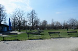 Chiemseepark Felden, leere Bänke