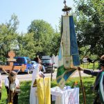 Zahlreiche Trachtler des traditionsreichen Vereins zur Bewahrung von Heimat, Sitte, Tracht und Brauchtum, sowie Hans Beham, ehemaliger Gebietsleiter vom Gebiet Mangfall in Gauverband 1 hatten sich im Obstgarten der Familie Impler in Kematen zu einer Andacht mit Segnung ihres „Orientierungs- und Richtungszeichen“ eingefunden. Den kirchlichen Rahmen, musikalisch gestaltet von der Trachtenkapelle Dettendorf, hatte Barbara Huber als ehrenamtliche Wortgottesdienstleiterin vorbereitet. Den Segen der Fahne mit seinen Trägern sowie eines neuen Fahnenbandes, spendete Pater John, Geistlicher der Pfarrei St. Martin Au, Kematen/Dettendorf. Selbst der Himmel war den Trachtler gnädig und präsentierte sich, passend zu Mariä Himmelfahrt in herrlichem Weiß-Blau und strahlend heißer Sommersonne.