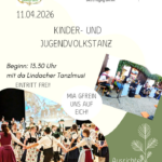 Am kommenden Samstag, 11. April 2026 ist es wieder soweit und als Gastgeber fungiert erstmals der Trachtenverein ‚Enzian’ Töging/Inn. Die Veranstaltung für den Nachwuchs beginnt um 13.30 Uhr im Restaurant ‘Kantine’, Werkstraße 11, 84513 Töging/Inn und den musikalischen Rahmen bildet die Lindacher Tanzlmusi aus Burghausen, die zu den Tanzrunden zünftig aufspielen wird. Gemeinschaftsplattler, lustige Lieder, Speis’ und Trank etc. runden das Geschehen ab und die ganze Bevölkerung ist dazu bei freiem Eintritt herzlich eingeladen.