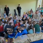 Mit den gebastelten Tiermasken verwandelten sich die Kinder anschließend in Tiere, die bei der Fortsetzung der Geschichte von Noah auf die Arche eingeladen wurden. So wurden alle vor der Flut gerettet und konnten wieder an Land gehen, als die Sonne hervorkam und die Taube den Ölzweig brachte. Der große Regenbogen symbolisierte Gottes Versprechen, nie wieder eine Flut diesen Ausmaßes auf die Erde zu schicken. Am Ende des Kinderbibeltages bedankte sich Diakon Günter Schmitzberger bei allen Mitwirkenden, auch bei den Helfern in der Küche und für alle Kuchenspenden.