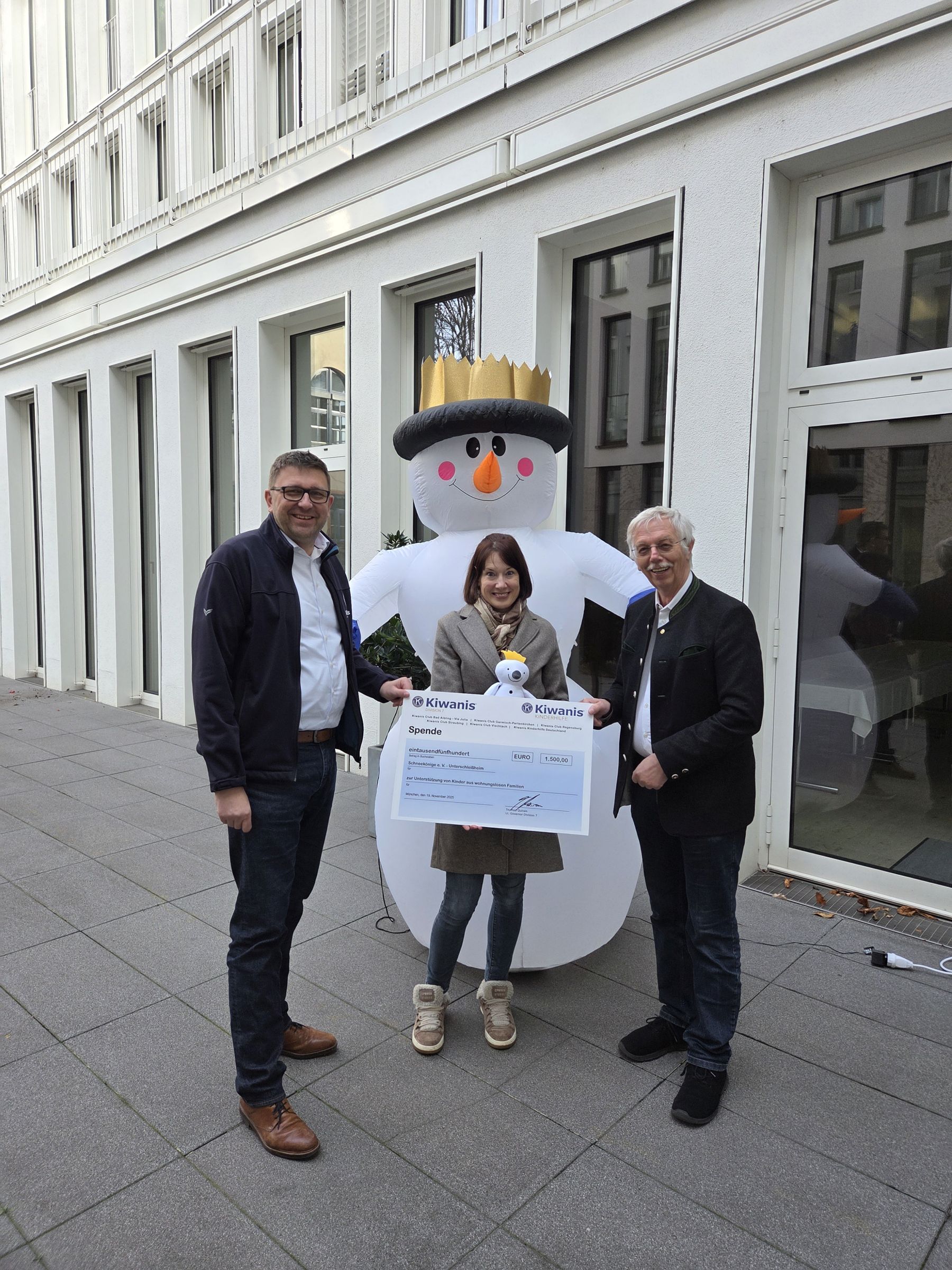 von links nach rechts: Thomas Quiram (Lt. Governor), Cornelia Pagel (1. Vorstandsvorsitzende von Schneekönige e. V.) und Peter Bitzl (Präsident KC Garmisch-Partenkirchen)