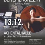 Die sympathische Chinesin ist einigen aus Ihrer derzeitigen Lehrtätigkeit an der Musikschule Grassau und vergangen Konzerten in der Achentalhalle bekannt. In Unterwössen spielt sie auf dem Flügel der Karl und Erna Eigner Stiftung ein Benefizkonzert zugunsten dieser Stiftung und der musikalischen Talente und Ensembles im Achental. Auf dem Programm stehen unter anderem Werke von Johann Sebastian Bach, Ferruccio Busoni, Ludwig van Beethoven und Robert Schumann.