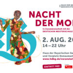 Am Samstag, 2. August 2025 wird das Haus der Bayerischen Geschichte bereits zum zweiten Mal Treffpunkt für alle Fans außergewöhnlicher Mode. Nach der erfolgreichen Veranstaltung im August 2023 laden wir wieder zu einer „Nacht der Mode“ und zu einer faszinierenden Reise durch die Welt von Stoffen, Schnitten und Visionen ein. In diesem Jahr setzen sich die Entwürfe in besonderer Weise mit der Ästhetik und Zeit von König Ludwig I. auseinander – innovativ, historisch reflektiert und überraschend modern. Inspiration bot den Schülerinnen und Schülern der Deutschen Meisterschule für Mode die Bayerische Landesausstellung „Ludwig I. – Bayerns größter König?“, die noch bis 9. November im Donausaal zu sehen ist.