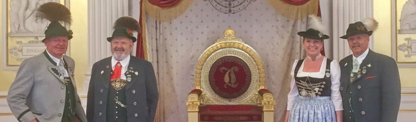 Mit Freude nahmen Vertreter des Bayerischen Trachtenverbandes an der Wiedereröffnung des Königsbaues in der Münchner Residenz teil und folgten gerne der Einladung von Bayerns Ministerpräsident Dr. Markus Söder. In zehn Jahren Restaurierungszeit (die Bauzeit seinerzeit betrug “nur” acht Jahre) wurden 37 Millionen Euro ausgegeben. Vom Gelingen des Bauwerkes überzeugten sich vom Bayerischen Trachtenverband Landesvorsitzender Max Bertl, seine Stellvertretr Peter Eicher und Günter Frey, Landesschriftführerin Hildegard Hoffmann sowie Ehrenvorsitzender Otto Kragler. Den Bund der Bayerischen Gebirgsschützen vertrat unter anderem Landeshauptmann Martin Haberfellner.