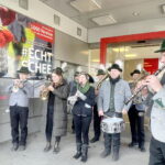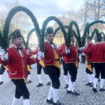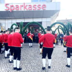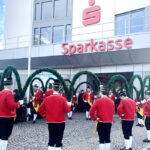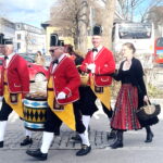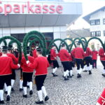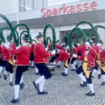 Im Rahmen der heurigen Reisen und Auftritte im Landkreis Rosenheim wurde auch der Marktgemeinde Prien auf Einladung der dortigen Sparkasse ein Besuch abgestattet. Zahlreiche Priener und Gäste verweilten mit Interesse beim Tanz mit den Reifenschwingern, Faßmachern und Kasperln. Blasmusikalisch begleitet wurde die Schäffler -wie schon seit 1970 – von der Blaskapelle “Am Was´n”.