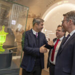 AL-25-1445: Ministerpräsident Dr. Markus Söder, MdL (li.), Markus Blume, Staatsminister für Wissenschaft und Kunst (re.) und Direktor Dr. Richard Loibl (Mitte) beim Rundgang durch die Ausstellung.