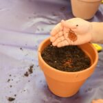 Eine Schaufel voll Erde fällt auf die Ringelblumensamen in einen kleinen Terrakotta-Topf. Mit einer kleinen gelben Gieskanne wird sie gleich noch bewässert. Der Topf selbst ist bunt bemalt mit kleinen Punkten, Blumen und bunten Strichen. Er ist ein Geschenk von Herzen und symbolisiert eine besondere Patenschaft: Rund 20 Kinder des Kindergartens Katharinenheim in Bad Endorf haben zusammen mit den Senioren des benachbarten Altenheims Zimmerpflanzen eingetopft und sich gegenseitig kennengelernt. Hintergrund der Aktion ist ein Pflanzpatenprojekt des Gesundheitsamtes Rosenheim mit Unterstützung der Gesundheitsregionplus im Landkreis Rosenheim. Gesundheitsmanagerin Katrin Posch hat die Aktion ins Leben begleitet. Sie ist der Start einer Projektreihe, die sich mit den gesundheitlichen Folgen von Einsamkeit auseinandersetzt. Diesen Präventionsschwerpunkt setzt das Bayerische Staatsministerium für Gesundheit und Pflege in diesem Jahr. Denn: Einsamkeit kann jeden treffen und Einsamkeit kann auch krank machen.