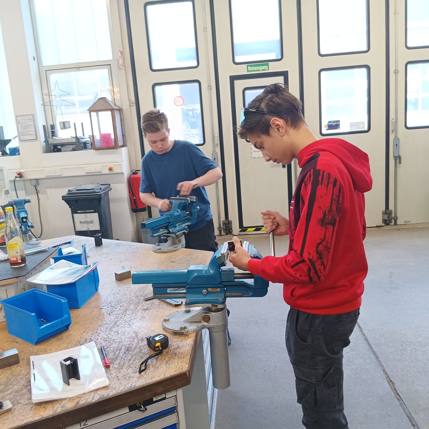 Bei der Jobtour des Landkreises Landshut erhielten die Teilnehme-rinnen und Teilnehmer erste Einblicke in verschiedene Berufsfelder und durften sich – wie hier bei SPIE SE – an eigenen Arbeiten versuchen.
