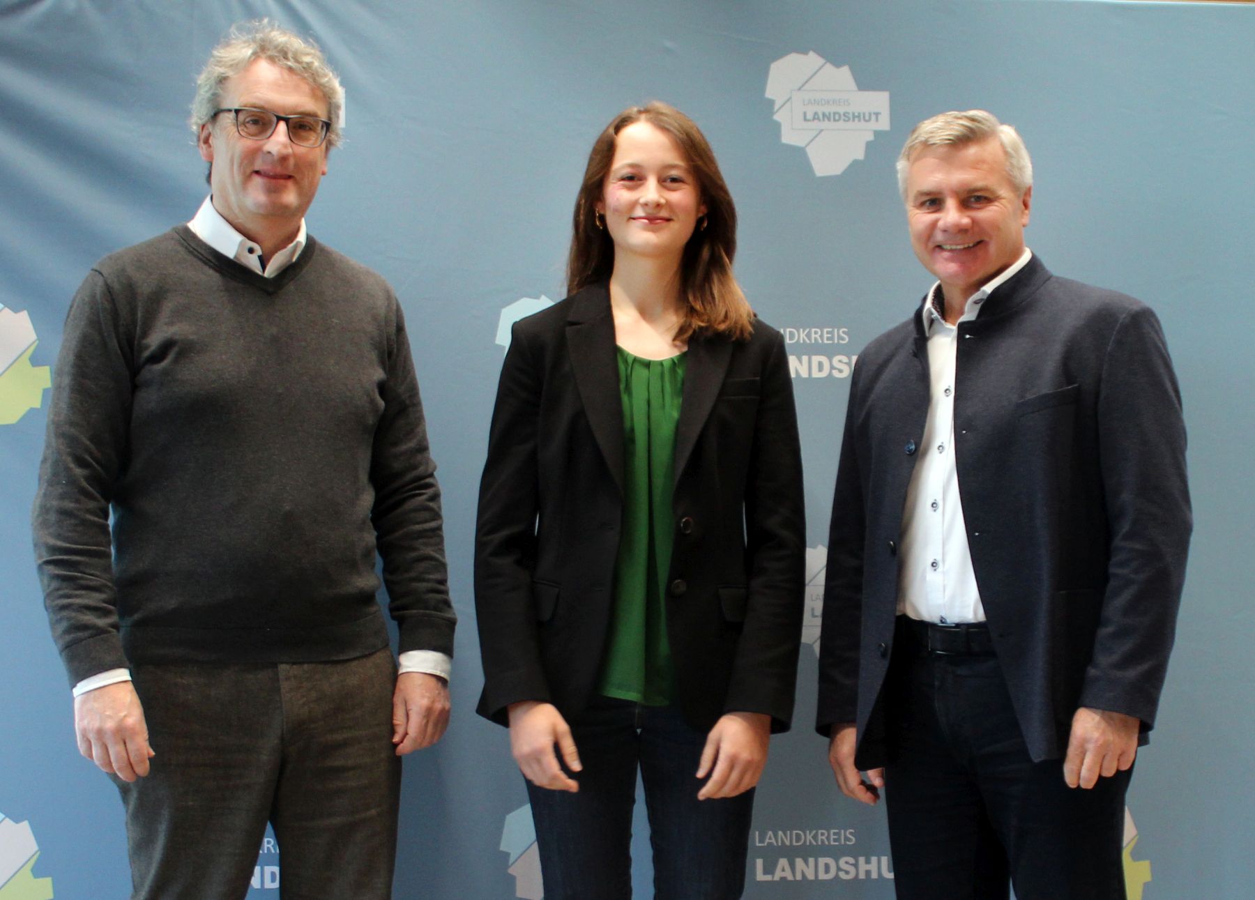 Sofie Bliemel als neue Klimaschutzmanagerin des Landkreises Landshut, gemeinsam mit Sachgebietsleiter und Landkreis-Wirtschaftsreferenten Ludwig Götz (links) und Landrat Peter Dreier.