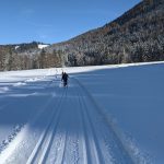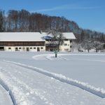 Ich bin erst 3 km auf den Brettern und drehe noch ein paar Runden herum um das seit Jahren leer stehende Bauernhofanwesen , bei dem im Jahr 1980 Passagen des bekannten deutschen Spielfilms “Der Mond ist nur a nackerte Kugel” von Jörg Graser gedreht wurden. Es sind noch zwei weitere Loipler unterwegs, die ebenfalls diesen verwunschenen Ort genießen.