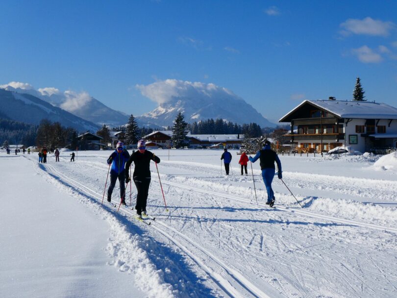 Reger Betrieb herrscht nach den reichlichen Schneefällen in den letzten Tagen auf den Langlaufloipen in Reit im Winkl. Wenn auch etwas verspätet, so hat der Winter jetzt Einzug gehalten und es liegt im Tal eine Schneedecke von 40 Zentimetern. Dazu kam jetzt am Sonntag nach den Schneefällen in der Nacht noch strahlender Sonnenschein und einem traumhaften Wintertag stand nichts mehr im Weg. Sehr gut angenommen werden auch die gewalzten Winterwanderwege rund um Reit im Winkl.