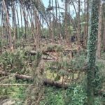 – Ein Bild der Verwüstung – wer hier die Motorsäge ansetzt, muss wissen was zu tun ist! Die gebogenen Stämme entwickeln sich bei falscher Schnittführung zu lebensgefährlichen Geschossen. Das ist Arbeit für Profis und sichere Forstmaschinen!