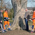 Ist er gesund, stehen Pflegemaßnahmen an, oder muss er gefällt werden? Das zu beurteilen ist sehr verantwortungsvoll und eine Menge Arbeit: Ca. 900 Bäume stehen jährlich zur Kontrolle für das Team des Bauhofes in Aschau an. Ob in Parkanlagen, an Parkplätzen, an den Flächen und Liegenschaften der Gemeinde, alle Bäume müssten kontrolliert werden, ob eine Gefahr von ihnen ausgehen kann. Dazu sind die Bäume mit einer Nummer versehen. Mussten früher die Befunde in Papierform erfasst werden, steht nun eine digitale Verwaltung mit einer speziellen Software zur Verfügung, die das sogenannte Baumkataster pflegt. Rudi Angermaier (von inks), Sepp Feistl, Aschaus Zweiter Bürgermeister Michael Andrelang und Lorenz Hofmann verschaffen sich gerade einen Überblick über den Zustand der ersten Bäume, wie hier an einem Ahorn im Aschauer Kurpark.