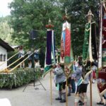 Pfarrer Martin Straßer segnete das große, über dem Altar angebrachte Holzkreuz, das von zwei jungen Trachtlern des Festvereins „Dö Koasawinkla“ für dieses Gaufest angefertigt worden war. „Im Zeichen des Kreuzes können wir Gottes Macht erkennen“, sagte er dabei Bei der ebenfalls durchgeführten Ehrung für die verstorbenen und gefallenen Vereinsmitglieder nannte Vorstand Christoph Bauer stellvertretend den Gründungsvorstand der Vereins im Jahr 1901 Thomas Sachenbacher, die zuletzt verstorbenen Ehrenvorstände Hubert Lehrberger, Toni Fleindl und Franz Mühlberger und die leider viel zu früh verstorbenen Vorstände Hans Bauhofer und Pankraz Mühlberger. Zur gleichen Zeit legten Mitglieder der Aktiven Gruppe am Denkmal im nahegelegenen Friedhof einen Kranz nieder.