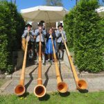 Mit dabei waren dieses Mal weit angereiste Gäste vom Verein „Einigkeit“ der Bayern in Dortmund , das Herdecker-Alphorn-Trio, Andrea, Reinhard und Tim. Sie sind das Highlight ihres Bayernvereins. Gemeinsam mit dem Vorsitzenden des Berliner Bayernvereins ließen sie während der Feier mehrmals die Alphörner erklingen.
