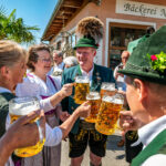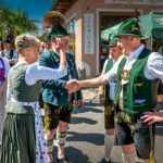 Am Dorfplatz herrschte unter den grünen Sonnenschirmen rund um die Kirche bereits ausgelassene Stimmung. Die Rohrdorfer Blaskapelle sorgte für die musikalische Umrahmung, während Familien, Jungtrachtler, Gäste und Einheimische das bunte Treiben genossen. Der Platz war gefüllt mit Leben – und mit Vorfreude auf das große Schauspiel.