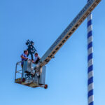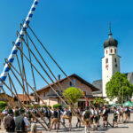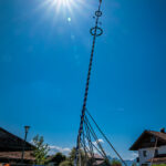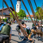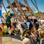 Das Aufstellen selbst war ein Höhepunkt bayerischer Festkultur: Mit vereinten Kräften und reiner Muskelkraft wurde der Maibaum mit traditionellen „Schwaiberln“ in die Senkrechte gehievt – zentimeterweise, unter klaren Kommandos, mit viel Geschick und noch mehr Schweiß. Dabei kam selbstverständlich kein Kran zum Einsatz – der Baum wurde „richtig echt“ aufgestellt. Die abschließende Verschraubung übernahm ein eingespieltes Team mit schwerem Gerät und routiniertem Blick.