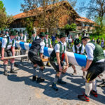 Bereits am Vormittag rollte der 30 Meter lange Maibaum, festlich geschmückt, durch die Straßen – gezogen von einem prächtigen Pferdegespann unter der Führung von Florian Wörndl. Auf dem Maibaum sitzend: die jungen Dirndl und Buben des Trachtenvereins Almarausch Hittenkirchen, in Tracht, mit Stolz und Freude im Gesicht. Der Baum selbst war eine Spende der Familie Weinberger aus Schaurain – ein Geschenk an die Dorfgemeinschaft, das von Anfang an sinnbildlich für den Zusammenhalt stand.