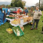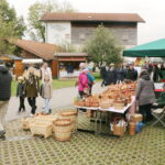 Bereits in den frühen Vormittagstunden war der Markt sehr gutg besucht, was sich zum Nachmittag verstärkte. Die Gäste und Käufer kamen wie aus den Nummerschildern erkennbar aus dem Landkreis aber auch aus Miesbach, Traunstein und dem nahen Tirol. Schauen, ratschen, Kontakte knüpfen, prägte den Weg zu den Verkaufständen. Hunger und Durst konnten in vielfälliger weise gestillt werden. Invormatives boten auch der Stand des Obst- und Gartenbauverein, zum Vereinsgeschehen, zusammen mit den Imkern. Noch mehr Bio geht nicht, so das Werben am Stand. Hier konnte man beim Pressvorgang zuschauen, selbstgepressten Apfelsaft geniessen, von Früchten die wenige Tage vorher noch am Baum waren. Die Mühle mit ihrem technischen Werken war ein weiterer Anziehungspunkt, dazu der Backofen wo man beim Brotbacken zusehen konnte. Zwei jungen Musikanten unterhielten stimmungsvoll, unaufdringlich. Der “Eine Weltladen”, sowie Fair Trade Aktion, lenkten das Augenmerk auch auf die globalen Probleme. “A scheena Markttag” war die oft gehörte Meinung der Besucher.