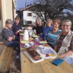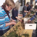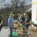 Zudem gibt es selbstgemachte Marmeladen zum Mitnehmen, kleine Köstlichkeiten zur Stärkung vor Ort und schön und frisch gebundene Palmbuschen. Unsere Aufnahme zeigt Frauen der Chiemgauer Ukraine-Hilfe beim Binden der Palmbuschen in Greimharting.