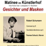 Stattdessen wird der Rosenheimer Pianist und Kulturpreisträger Thomas Schuch im Hans-Fischer-Saal von 11 bis 12 Uhr ein Soloprogramm „Gesichter und Masken“ mit Werken von Robert Schumann spielen. Seine frühen Kompositionen „Carnaval“ und „Davidsbündlertänze“ sind voller geheimer Andeutungen an wahre Komponisten und fiktive Personen, auch seine heimliche Liebe zu Clara findet darin ihren verschlüsselten Widerhall. Das Konzert wird moderiert, die Kasse ist ab 10 Uhr geöffnet.