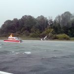 Im Bereich der Mühlner Bucht strandete eine Segelyacht mit 4 Personen an Bord. Der Hilfsmotor der Yacht war nicht stark genug um den sicheren Hafen zu erreichen. Der Skipper versuchte die Fahrt unter Segel durchzuführen, diese wurden jedoch vom Sturm zerfetzt. Nachdem die unverletzte Besatzung von einem Rettungsboot abgeborgen war, konnte das havarierte Boot, nach Abflauen des Sturmes wieder freigeschleppt werden. Als bereits die ersten Windböen und Blitze einsetzten stellte die Wasserschutzpolizei östlich der Krautinsel 3 Personen, die noch mit einem kleinen Mietelektroboot auf dem See unterwegs waren fest. Das Boot wurde von der WSP zur Fraueninsel begleitet und in Sicherheit gebracht. Ca. 1,5 km vor Chieming kenterte ein Katamaran mit 2 Personen. Diese wurden von der Wasserwacht gerettet und mussten mit leichten Verletzungen in Krankenhaus Traunstein transportiert werden.