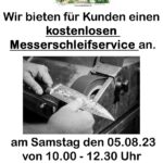 Am kommenden Samstag, den 5. August 2023, bietet die Biokäserei Anderlbauer aus Frasdorf von 10 bis 12.30 Uhr erneut für alle Kunden in ihrem Hofladen einen kostenlosen Messerschleifservice an. Des Weiteren ist an diesem Tag auch der Caterer Pink Deli mit Leckereien für Feinschmecker zu Gast.