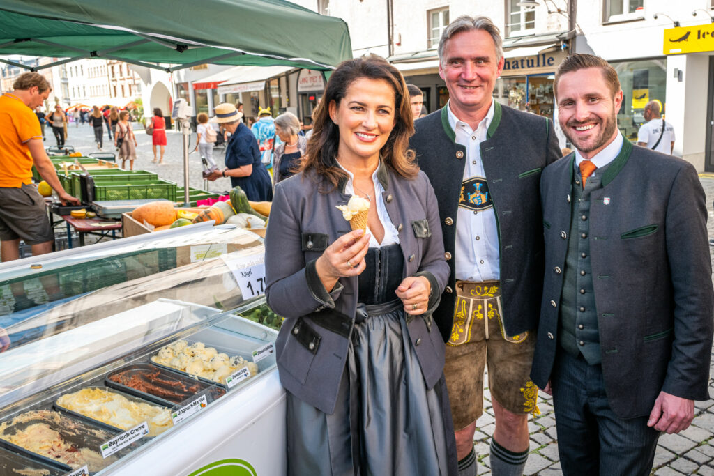 Michaela Kaniber, Bayerische Staatsministerin für Ernährung, Landwirtschaft und Forsten besuchte am Freitag die Schmankerlstraße in Rosenheim und nutzte die Gelegenheit für einen Rundgang über die Marktstände. Wir haben Frau Kaniber dabei begleitet und zeigen hier Impressionen ihres Besuchs. Sie war voll des Lobes für die Arbeit der bayerischen Landwirte. “Wer regionale Lebensmittel will, braucht die heimische Landwirtschaft. Unsere Bäuerinnen und Bauern leisten tagtäglich herausragendes, sie sind unserer Ernährer und deshalb verdienen sie unsere Wertschätzung”, so die Ministerin. Die Bauern pflegen unsere wunderschöne Kulturlandschaft, sie sind praktizierende Klimaschützer und bewahren unsere Umwelt, sie produzieren nachhaltige Lebensmittel und beste Premiumprodukte. Deshalb wäre es angebracht, vor den auf dem Feld arbeitenden Bauern den Hut zu ziehen.