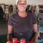 Etwas verspätet eilten wir nach dem eindrucksvollen Kirchengang mit unseren Alphörnern zum Village Sunday Market, wo wir mit Mitgliedern des Rotary Clubs Windhoek verabredet waren. Der Kontakt kam über die Deutsch-Namibische Gesellschaft zustande. Rotary ist eine internationale Wohltätigkeitsorganisation mit Hauptsitz in den USA, unter deren Dach die Rotary Clubs der Länder zusammengeschlossen sind. Am Imbisstand „Roof of Africa beer stall“ begrüßten uns die Rotariers von Windhoek mit ihrer Präsidentin Präsident Shareen Trude. In einem Gedankenaustausch verwies Shareen auf die Werte der Rotary Clubs. Service above Self, den Dienst über das Ich stellen – von diesem rotarischen Motto lassen wir uns leiten, so die Clubpräsidentin.