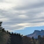 Der Chiemseeuferweg zeigt sich heute von seiner stillsten Seite – kaum ein Mensch ist unterwegs. Hinter dem Schöllkopf öffnet sich die Landschaft, die Felder leuchten in warmen Tönen und dahinter tauchen die Berge auf. Auf der Kampenwand und dem Hochgern liegt Schnee.