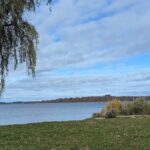 Weiter geht´s auf dem kaum befahrenen Uferweg. Ab und zu glitzert das Wasser zwischen den Bäumen hervor. Nur das Rascheln der Blätter begleitet uns. Im Chiemseepark Felden setzen wir uns auf eine Bank und schauen auf den See, der ruhig und spiegelglatt vor uns liegt. Wer die herbstliche Ruhe am Chiemsee erleben möchte, jetzt ist die richtige Zeit dazu.