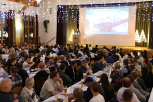 Rund 330 Mitarbeitende der Molkerei Berchtesgadener Land lauschten auf der Weihnachtsfeier den Worten des Geschäftsführers,