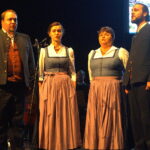 Wie durch ein Fenster blickte man an der Bühnenrückwand auf stimmungsvolle Landschaften, Sonnenuntergänge oder Krippenszenerien. Die Lichtspots auf der Bühne wanderten übergangslos von einer Gruppe zur anderen, auch die Volksweisen und Lieder flossen ineinander über – mit instrumentalen Einleitungen, Zwischenspielen und Abschlüssen. Alle Musiker erzählten die gleiche Geschichte vom Licht des Erlösers unter einem anderen Blickwinkel – aus der Sicht der Hirten oder Marias, des Wirts und der drei Weisen – und mit jeweils anderen musikalischen Mitteln, die nur durch den Sprecher (Andreas Estner, Journalist und Moderator beim Bayerischen Rundfunk) bisweilen ergänzt wurden. Die Instrumentalgruppen „Ensemble Sabiona“ mit Zither, Gitarre und Harfe (Moritz Demer), die „Laubensteiner Bläser“ mit zwei Flügelhörnern, Basstrompete und Tuba, sowie das Ensemble des Münchner Advent mit ebensolchen Vollblutmusikern an Geige, Bratsche, Violoncello, Oboe, Querflöte, Klarinette und Harfe, sowie Kontrabass spannten gemeinsam den roten, musikalischen Faden und begleiteten den „Duschlhof G’sang“ mit vier Familienmitgliedern, die Gruppe „Trifarbig“ und den Chor des Münchner Advent unter der Leitung von Herta Albert. Authentisch und glaubwürdig erklang die Botschaft der echten und wertvollen Volksmusik in all ihren Facetten, mal zart im Drei- oder Vierg’sang, mal kräftig im Chor, in dem auch ein Tenorsolist sein Talent zeigte. Durch die hervorragende Klangqualität und die inhaltlich bedeutungsvolle biblische Erzählung verbreitete sich im Saal eine meditative Stille.