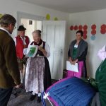 Parallel dazu hat sich ein Arbeitskreis unter der Leitung von Christian Kammerbauer gebildet, der sich um die Gestaltung der Präsentation diverser trachtlerischer Sach-Themen in den verschiedenen Räumlichkeiten kümmert, bestens unterstützt von der Werbe-Agentur ‚Atelier & Friends‘ aus Grafenau, die mit pfiffigen grafischen und architektonischen Entwürfen den Museums-Werdegang begleitet. So soll z. B. die Geschichte der Trachtenbewegung in Bayern als Zeitstrahl in Form einer Talerkette eines Miedergeschnürs auf einer Stoff-Leinwand angebracht werden, aufgelockert durch Bilder, Glasvitrinen und einem ‚Geschichts-Tisch‘, der elektronisch weitere Infos zur Trachtenbewegung, Öffentlichkeitsarbeit und dem Bayerischen Trachtenverband liefert.
