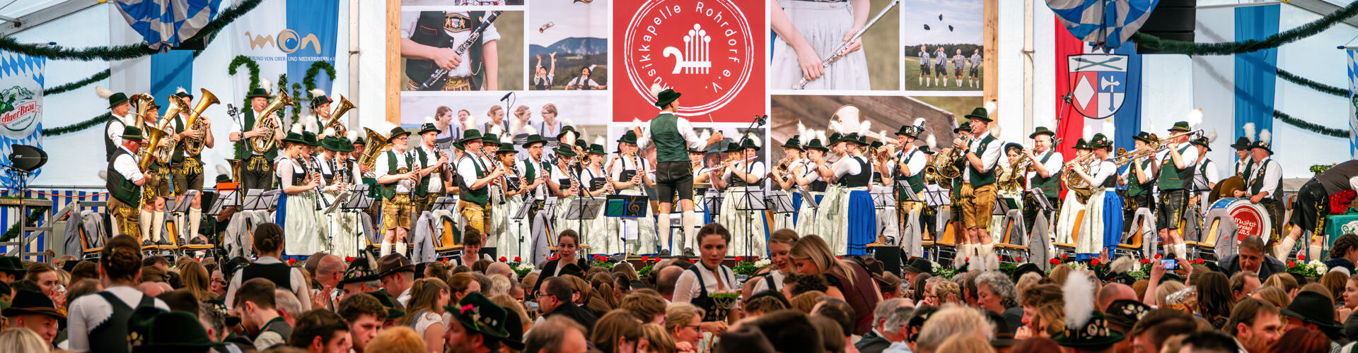 Die Festhalle war bis auf den letzten Platz gefüllt, das Zelt geschmückt in weiß-blau, die Stimmung heiter bis euphorisch. Die Musikkapelle Rohrdorf präsentierte sich in Bestform – ebenso wie ihr jüngstes Mitglied: Die 15-jährige Magdalena Koll.