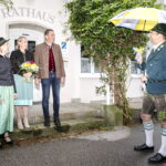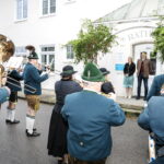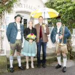 Bürgermeister Herbert Strauch übernimmt für das Musikfest 2025 in Übersee die Schirmherrschaft – Gemeinsam mit der Blaskapelle Übersee-Feldwies hatten der Festleiter Markus Genghammer und Musikvereinsvorstand Christian Kroner den Rathauschef mit Gstanzl angefragt. „Natürlich sog i eng zua, weil i des ois Bürgermeister gern dua“ lautete die Gstanzl-Antwort vom Überseer Bürgermeister Strauch. Passend zu seiner neuen Aufgabe bekam Herbert Strauch einen Schirm überreicht, der bei nassem Wetter vor dem Rathaus gleich eingeweiht wurde.