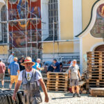 Kaum ist der letzte Applaus verklungen, beginnt ein ganz anderes Schauspiel – leiser, aber nicht minder bedeutend: der Abbau. In den frühen Morgenstunden danach liegt der Neubeurer Marktplatz ruhig da, als hätte er selbst noch Mühe, den Zauber der vergangenen Abende loszulassen. Nur wenige Stunden zuvor war hier noch das Herzstück des „Jedermann“-Spektakels – heute dominiert wieder das Praktische: Leitern, Schraubenschlüssel, schweißnasse T-Shirts und routinierte Handgriffe.