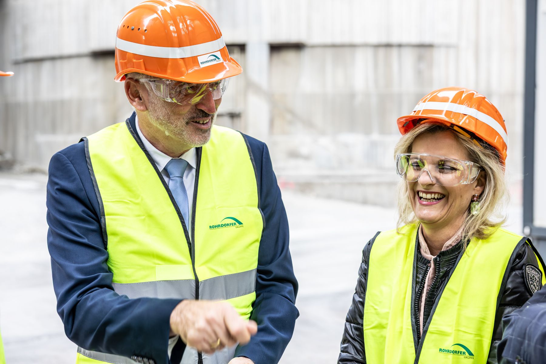 Von links: Mike Edelmann (Geschäftsführer Rohrdorfer) und Daniela Ludwig (Parlamentarische Staatssekretärin beim Bundesminister des Innern).