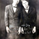 Das Bild „Eko und Iko“ im Obergeschoß zeigt die beiden Brüder George und William Muse, die – wie eine Postkarte aus dem Jahr 1922 darstellt – als Sheepheaded Cannibals (schafsköpfige Kannibalen), so genannte Albinos, in einem Wanderzirkus in einer Freak-Show zur Schau gestellt werden. Ihre Mutter konnte sie nach 20 Jahren unermüdlichen Kampfes den weißen Betreibern des Zirkus und gegen den Willden des weißen Bürgermeisters der Stadt zurück in die Familie holen. Nach einiger Zeit gingen die Beiden jedoch wieder mit dem Zirkus auf Wanderschaft, allerdings bekamen sie jetzt Lohn für ihre Arbeit, so dass sich später mit ihrem Ersparten zur Ruhe setzen konnten. Stanley´s Bild nimmt bis ins kleinste Detail mit Beschriftung das Motiv der Postkarte von 1922 auf. Die Haltung der Brüder ist identisch, allerdings nicht in den lächerlichen Kostümen mit Bart und verfilzten Haaren, sondern gekleidet in Anzüge und ihrem eindringlichen menschlichen Gesichtsausdruck: innig miteinander verbunden, Traurigkeit und Ausweglosigkeit im Gesicht. Mit diesem Gemälde gibt Stanley ihnen ihre Würde zurück. Der Betrachter fühlt die Sensibilität der Brüder und versteht ihre Blicke „warum tut ihr uns das an?“ So denkt der Betrachter unwillkürlich, wie generell Menschen anderen Menschen so etwas antun können.