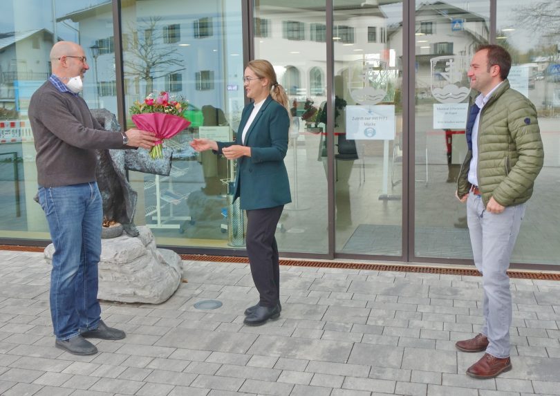 In ihrem neuen beruflichen Aufgabenfeld ist Anja Abel unterstützend bei der Vermieter- und Gästebetreuung tätig und präsentiert den Ferienort Bernau nach außen bei Online-Auftritten sowie im Rahmen der Digitalisierung in den sozialen Netzwerken. „Derzeit können wir wie seit 2. November wegen Corona und Kurzarbeit unser Büro im Haus des Gastes für den Publikumsverkehr leider nicht öffnen, aber wir sind vormittags über die Telefon-Nummer 08051-98680 sowie ansonsten über die email-Adresse tourismus@bernau-am-chiemsee.de erreichbar“ – so Christoph Osterhammer zur aktuellen Situation bei der Tourist-Information Bernau (www.bernau-am-chiemsee.de). Zweiter Bürgermeister Gerhard Jell hieß die neue Mitarbeiterin mit einem Blumenstrauß im Bernauer Rathaus willkommen und sagte dabei: „Einerseits sind wir froh, dass wir wieder ein komplettes und kompetentes Tourismus-Kollegium haben, auf der anderen Seite aber hoffen wir doch sehr, dass die Reiseeinschränkungen bald ein Ende nehmen. Wir in Bernau sind auf alle Fälle bestens vorbereitet, wenn es wieder losgeht“.
