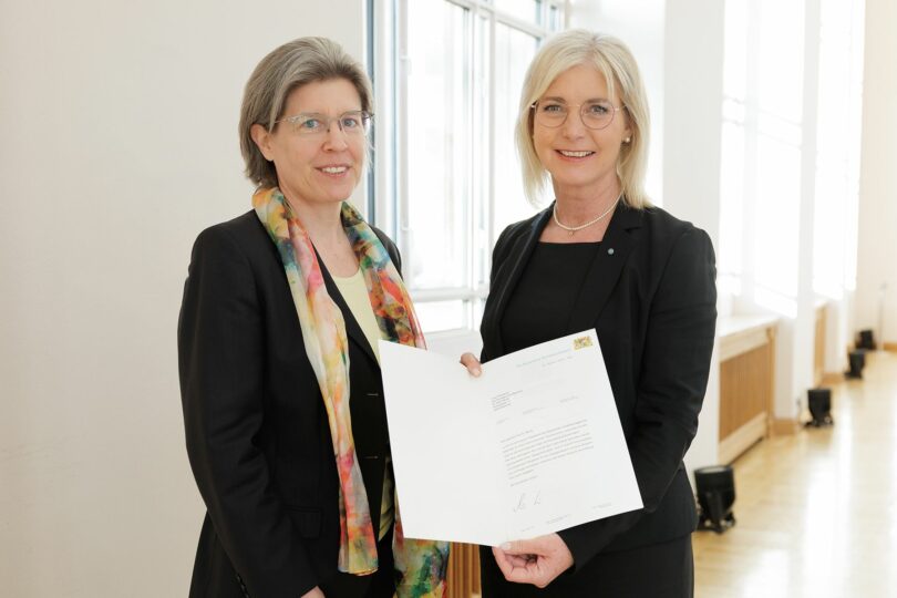 Das Bayerische Landessozialgericht bekommt zum 1. Juli 2025 eine neue Präsidentin: Bayerns Sozialministerin Ulrike Scharf hat heute Dr. Edith Mente in ihr künftiges Amt an der Spitze der bayerischen Sozialgerichtsbarkeit eingeführt. Die Juristin tritt die Nachfolge von Günther Kolbe an, der in Ruhestand geht. Bei der Übergabe der Ernennungsurkunde betonte Scharf: „Ich gratuliere Ihnen zur Ernennung sehr herzlich, wünsche alles Gute und viel Erfolg für das neue Amt. Ich bin überzeugt, dass Sie mit Ihrer langjährigen Erfahrung in unterschiedlichen Funktionen die Geschicke des Landessozialgerichts bestens leiten werden.“