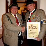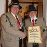Zum Schluss folgten wie immer die Ehrungen langjähriger aktiver und passiver Mitglieder durch den Hauptmann. Jörg Ott erhielt die „Ehrenmedaille der Kompanie in Bronze,“ Markus Rappel, Helmut Eberl, Christian Späth und Wolfgang Fischer erhielten die „Ehrenmedaille der Kompanie in Silber.“ Die „Ehrenmedaille der Kompanie in Gold“ für 50 Jahre aktive/passive Mitgliedschaft erhielten Erika Aigner, Michael Anner jun. und Stefan Anner.